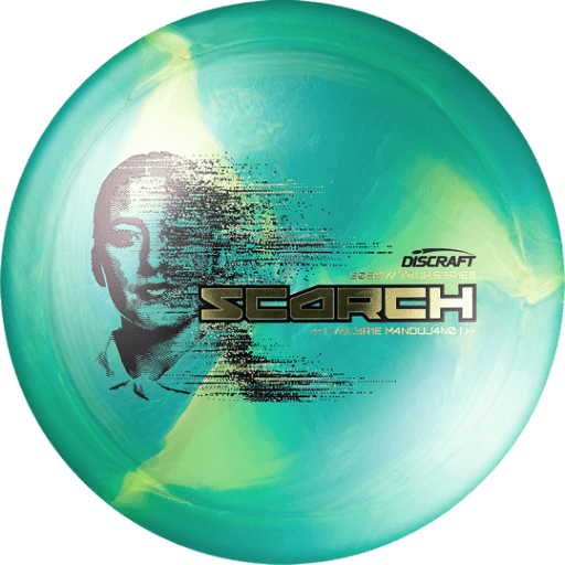 First, the Scorch is known for glide and workable distance. Because it combines high-speed turn with dependable fade, it creates long, controlled flights without becoming unpredictable. Additionally, this Valerie Mandujano tour-series release features Discraft’s Special Blend plastic, which provides premium grip, durability, and standout swirl patterns.