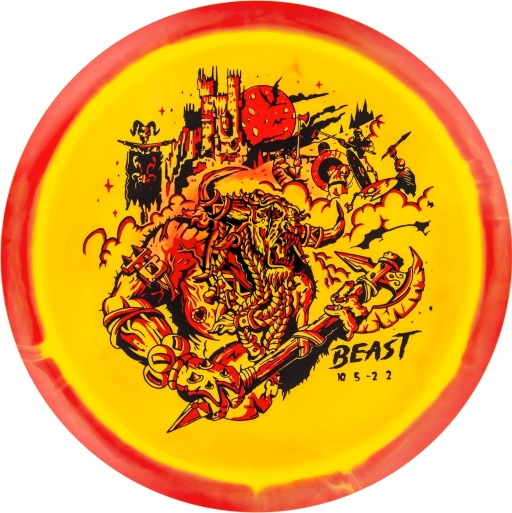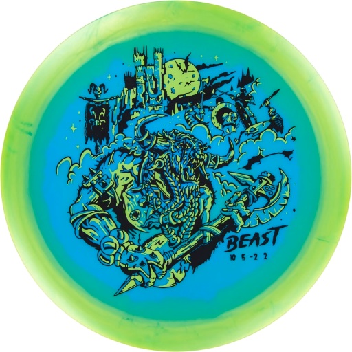 Innova Halo Star Beast is a premium 10-speed distance driver that blends eye-catching Medieval artwork with the consistent performance of Innova’s trusted Halo Star plastic. It delivers effortless glide, smooth turn, and a gentle fade that gives players of all skill levels controlled, reliable distance. Whether you’re hyzer-flipping down narrow fairways or launching tailwind bombs, this disc inspires confidence on every throw.