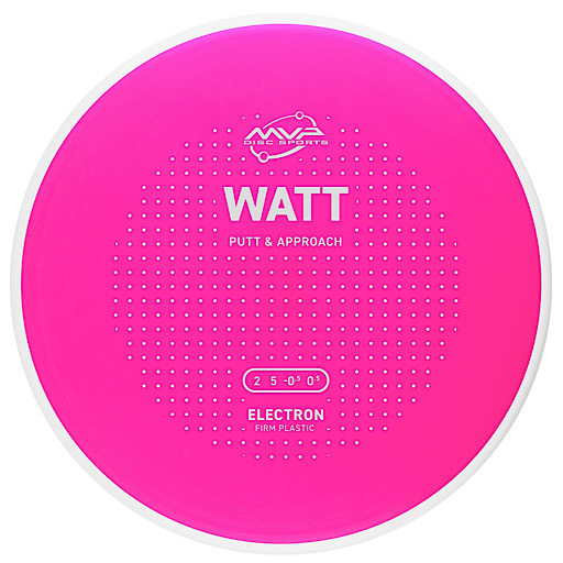 MVP Electron Watt White Rim in Soft, Medium, or Firm Electron plastic delivers 2 | 5 | -0.5 | 0.5 straight glide, confident grip, and precise putting control.